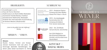 Bei der ARTe Kunstmesse Wiesbaden 2025 im RheinMain CongressCenter Wiesbaden habe ich ausgestellt. Vom 2. bis 5. Oktober 2025 zeigt die Messe auf rund 5.000 Quadratmetern zeitgenössische Kunst von rund 150 Künstlern und Galerien und stellt mit dem kuratierten Pavillon Wiesbadener Künstler erstmals zusätzliche Flächen für regionale Positionen vor.